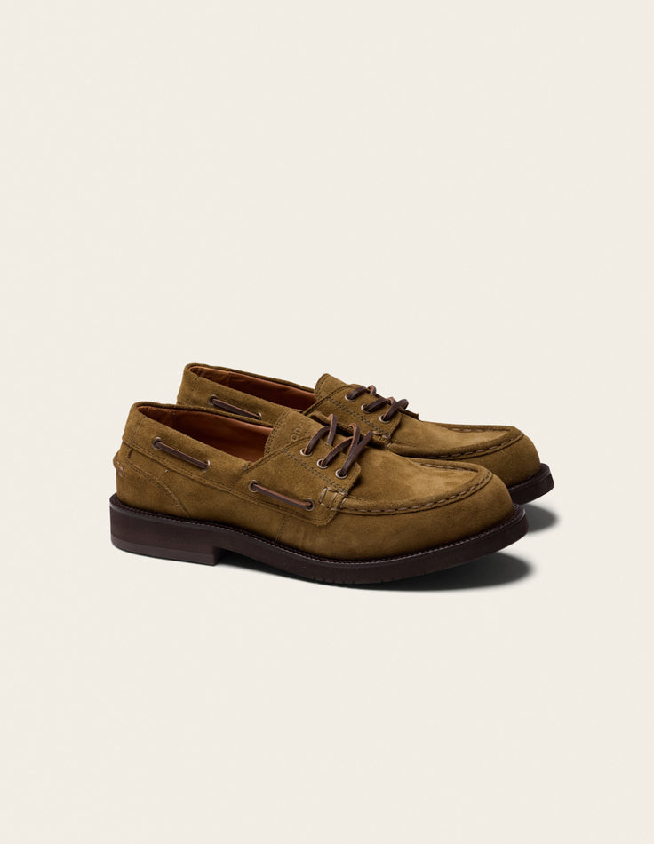 • Bosan : un modèle en suède qui se trouve à la croisée du mocassin et de la chaussure bateau. Cette paire polyvalente existe en plusieurs coloris, de l'ambre au marine en passant par le beige.