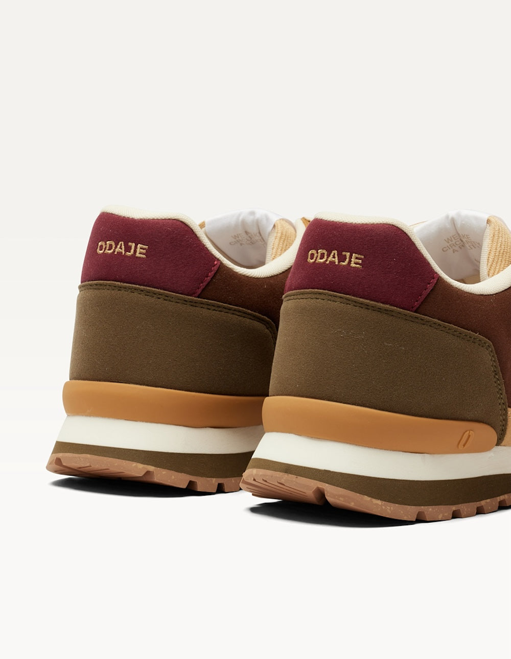 Découvrez Adrien, notre basket running pour homme. Dessinée par Charlotte dans notre QG parisien, Adrien se distingue par son mélange de couleurs pourpre beige ambre et est fabriquée à partir de suède vegan et de velours sourcés en Chine. Dotée d'une semelle extérieure en EVA avec un patin en gomme recyclée, elle garantit durabilité et adhérence. Doublée en mesh recyclé, elle allie confort et souplesse grâce au cousu Strobel, une technique de montage de cordonnerie traditionnelle. Ses lacets en polyester recyclé et sa conception intégralement vegan soulignent notre engagement écoresponsable. Coupure, Piqure et Montage en Chine.